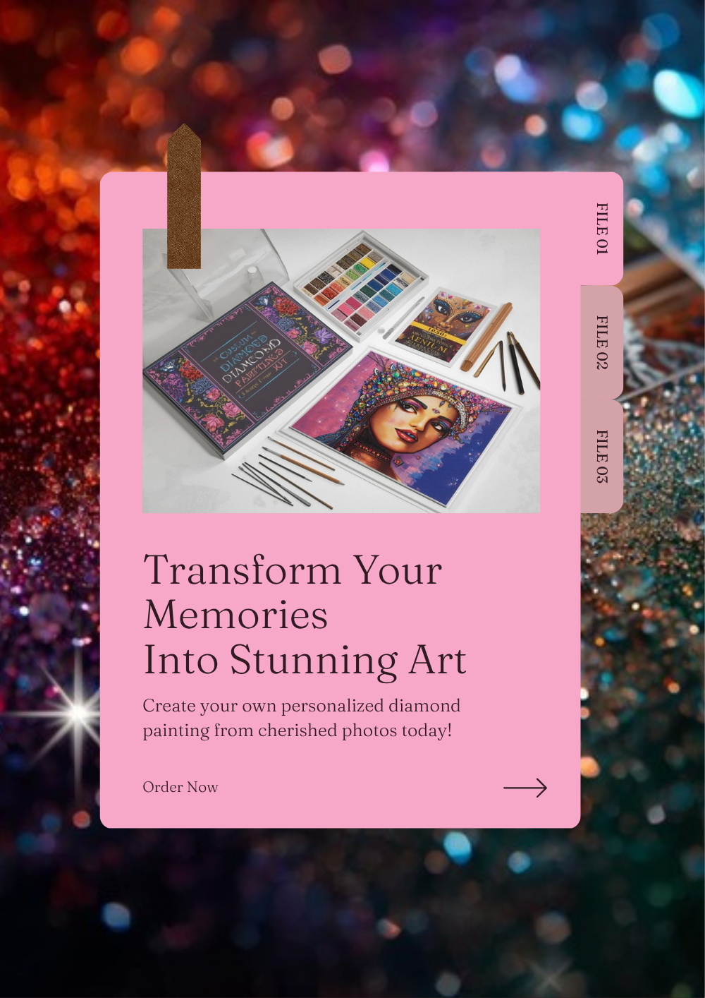 Transform your favorite photo into a stunning diamond painting! Upload any image and we’ll create a custom kit with high-quality canvas and premium diamonds.